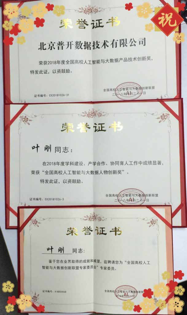 普開數據CEO葉剛先生,在本次會議中榮獲“全國高校人工智能與大數據人物創新獎”、“全國高校人工智能與大數據創新聯盟專家委員會成員”兩項殊榮。在葉剛先生帶領下的普開數據也取得了“全國高校人工智能與大數據產品技術創新獎”。